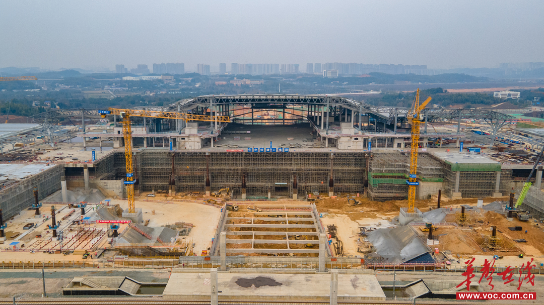 (长沙西站正式转入上部结构施工阶段。 国铁广州局供图)